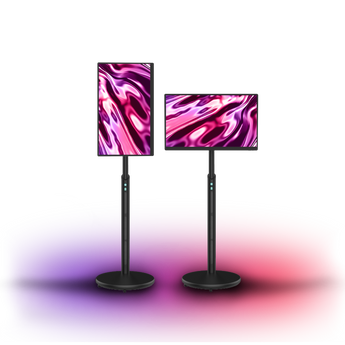 Both models rotate easily between orientations; the Müv Pro includes intelligent software that automatically adjusts content to fit perfectly.